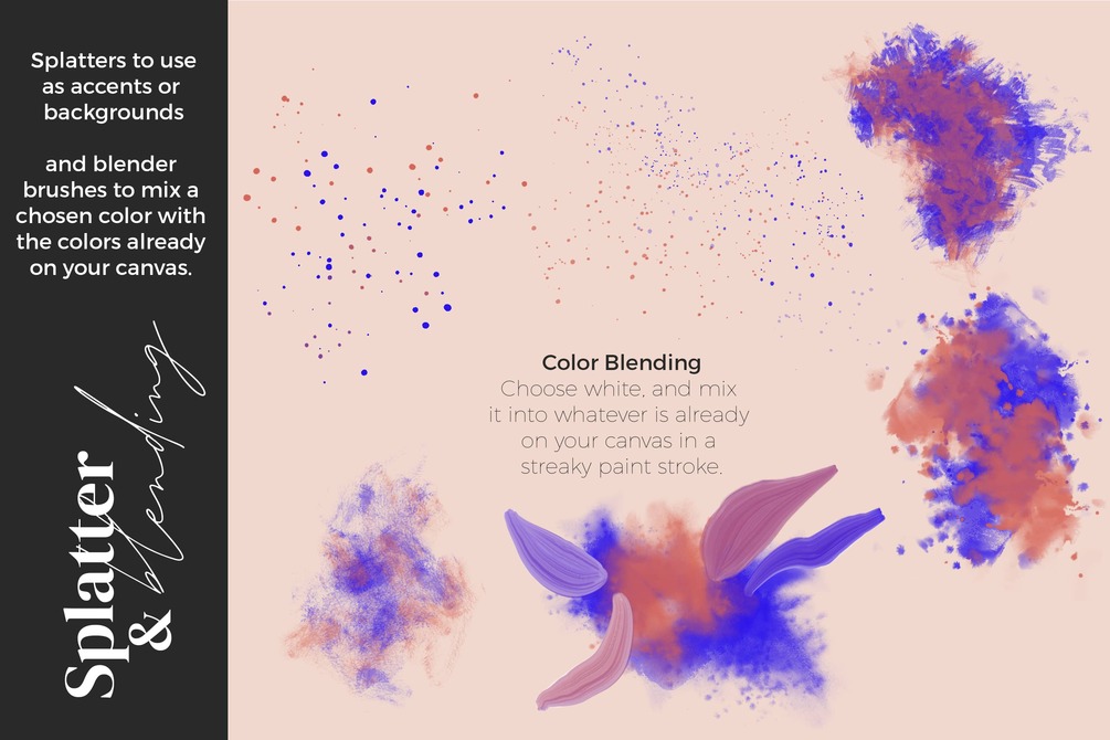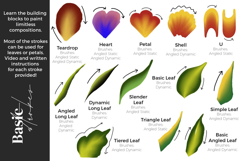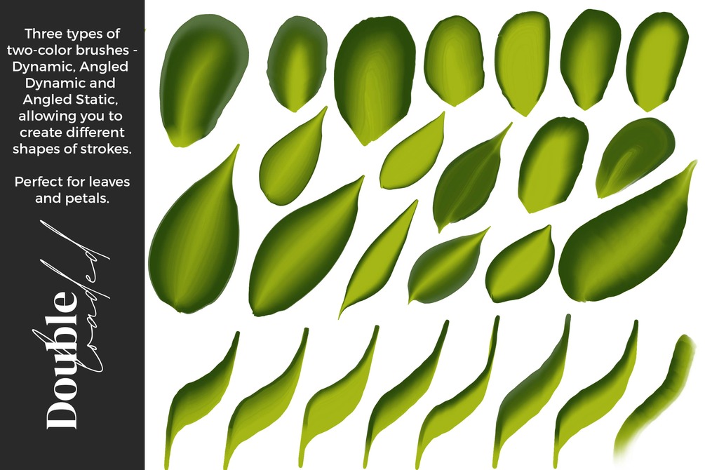 These brushes emulate the popular technique of double-loading a paintbrush and painting with both colors in the same stroke. Now for the first time, with this innovative brush system, you can achieve this single stroke painting technique in Procreate.