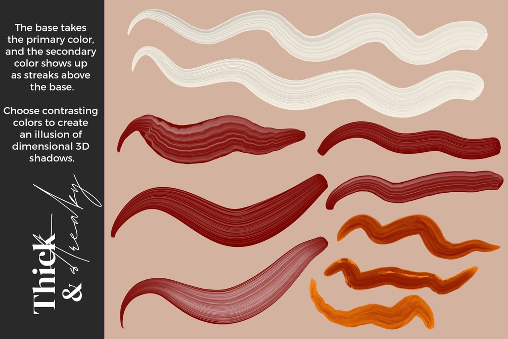 These brushes emulate the popular technique of double-loading a paintbrush and painting with both colors in the same stroke. Now for the first time, with this innovative brush system, you can achieve this single stroke painting technique in Procreate.