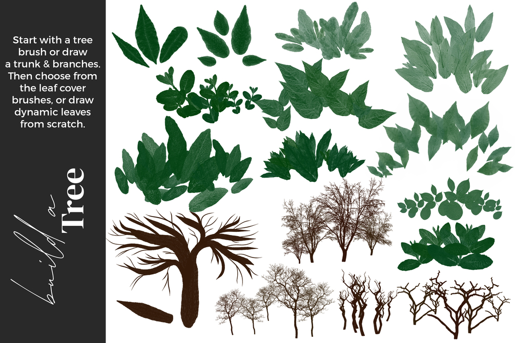 • 1 Tree trunk/branch brush for drawing your own tree silhouette.