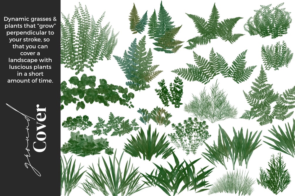 - 30 Ground cover brushes including grasses, field grasses, and ferns.