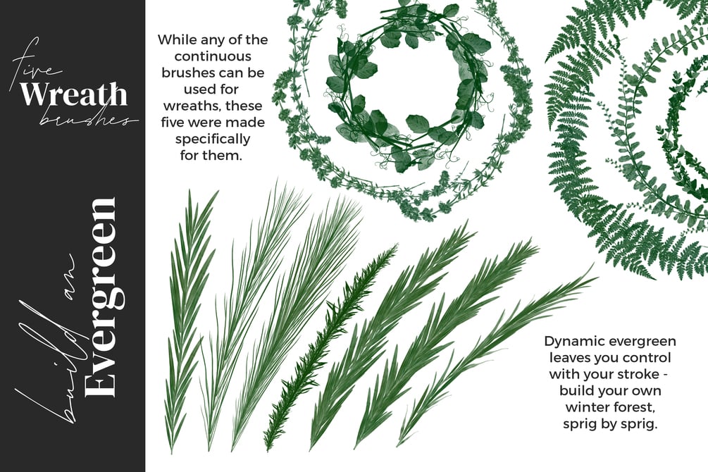 - 33 Continuous Leaves brushes which "grow" in the direction of the stroke.